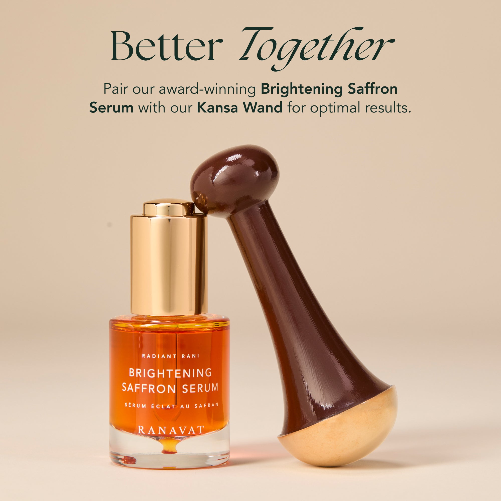 The Kansa wand is used to massage the marma or "energy points" on your body. First, apply a few drops of your favorite serum (Radiant Rani Brightening Saffron Serum pairs nicely with the wand). Copper is a healing metal that will enhance the function of an antioxidant-rich serum or oil as you gently massage. You can massage in any way that feels best. Some recommendations are: