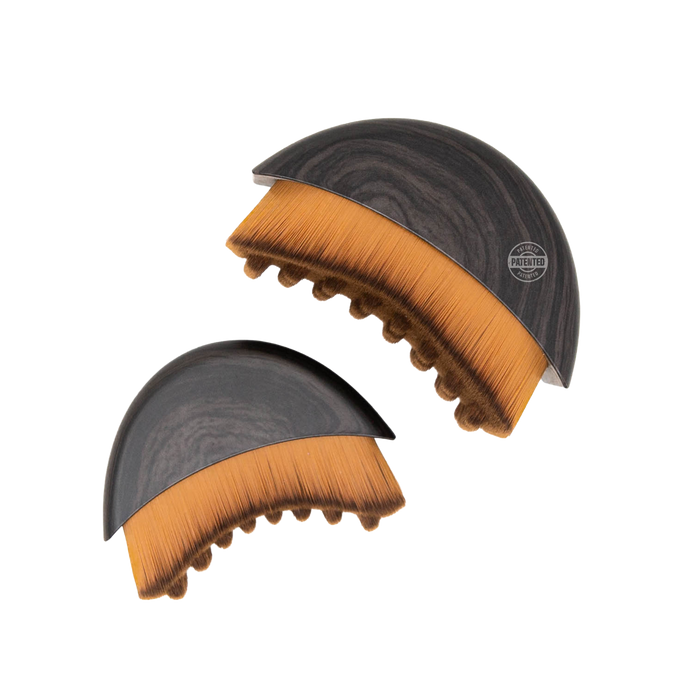 Distinguished by its patented design, this brush showcases a distinctive combination of bristle pattern and density that expertly adheres to the skin. This precision targeting is designed to focus on the superficial lymph vessels situated just beneath the skin's surface. The brush, when used in conjunction with specialized techniques, emulates the passive contractions of lymph vessels. This manual stimulation actively propels fluids and promotes the natural flow of lymph, thereby contributing to a holistic and rejuvenating experience.