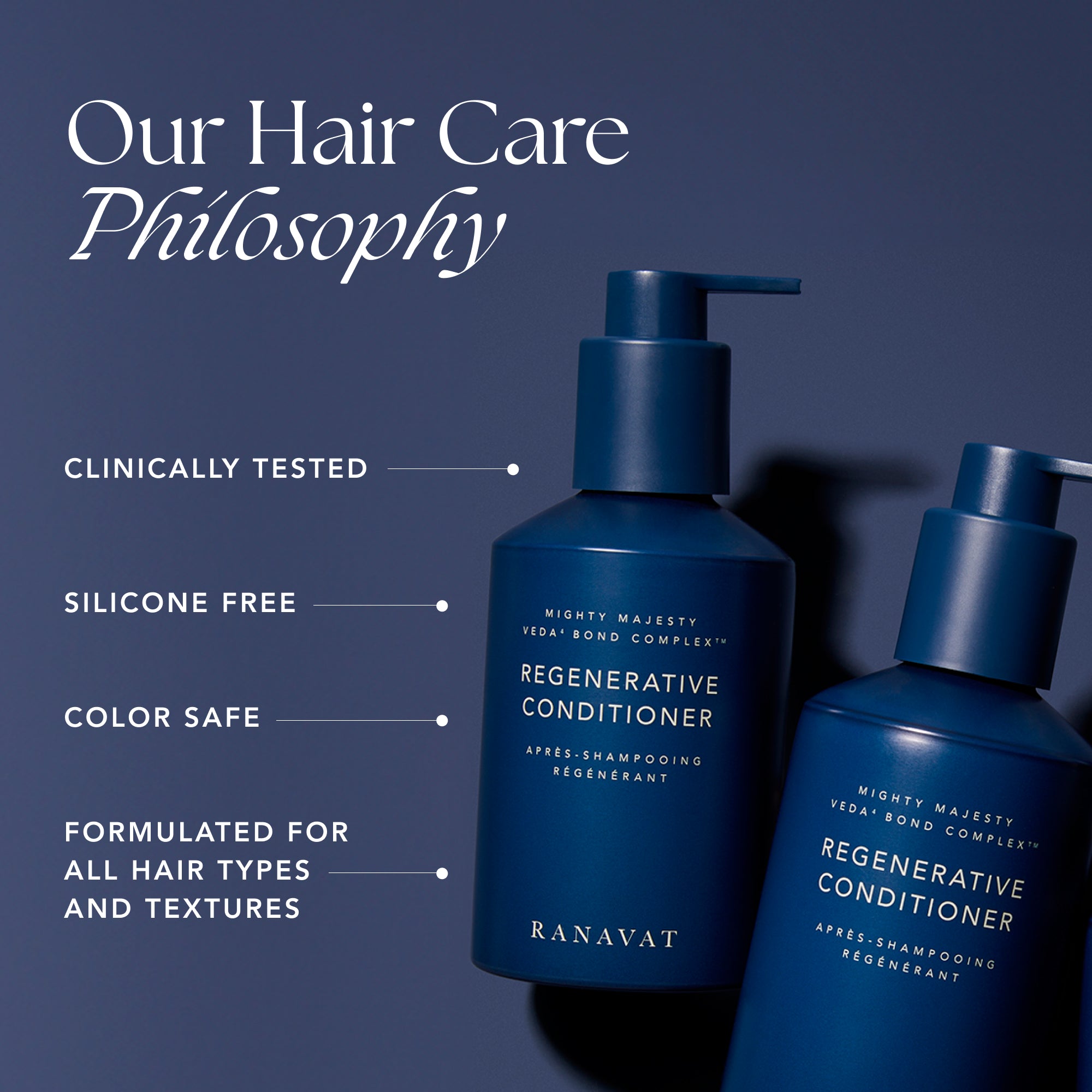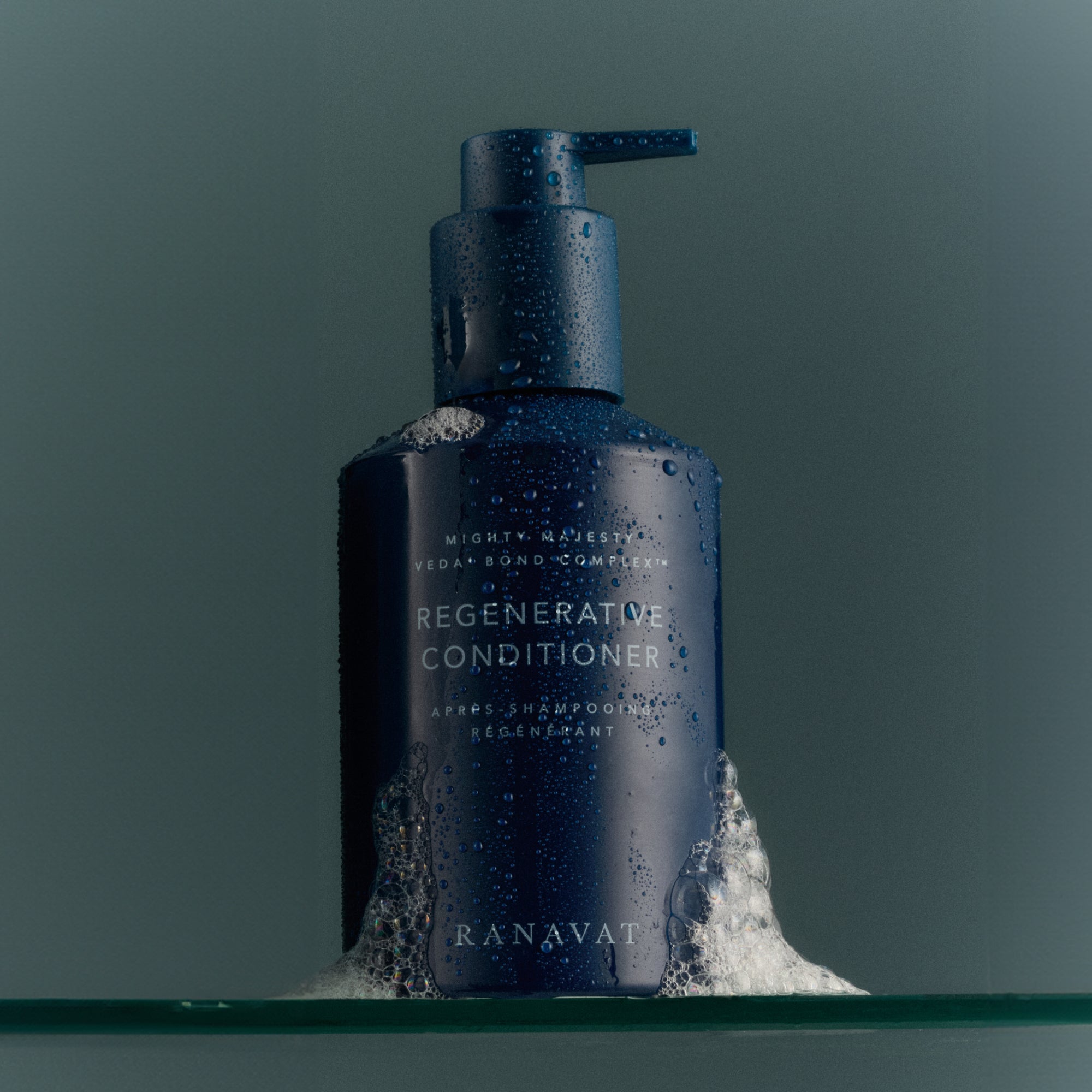 Après avoir rincé le shampooing Regenerative Veda⁴ Bond Complex, appliquez-le sur les cheveux en commençant à mi-longueur, en travaillant jusqu'aux pointes.