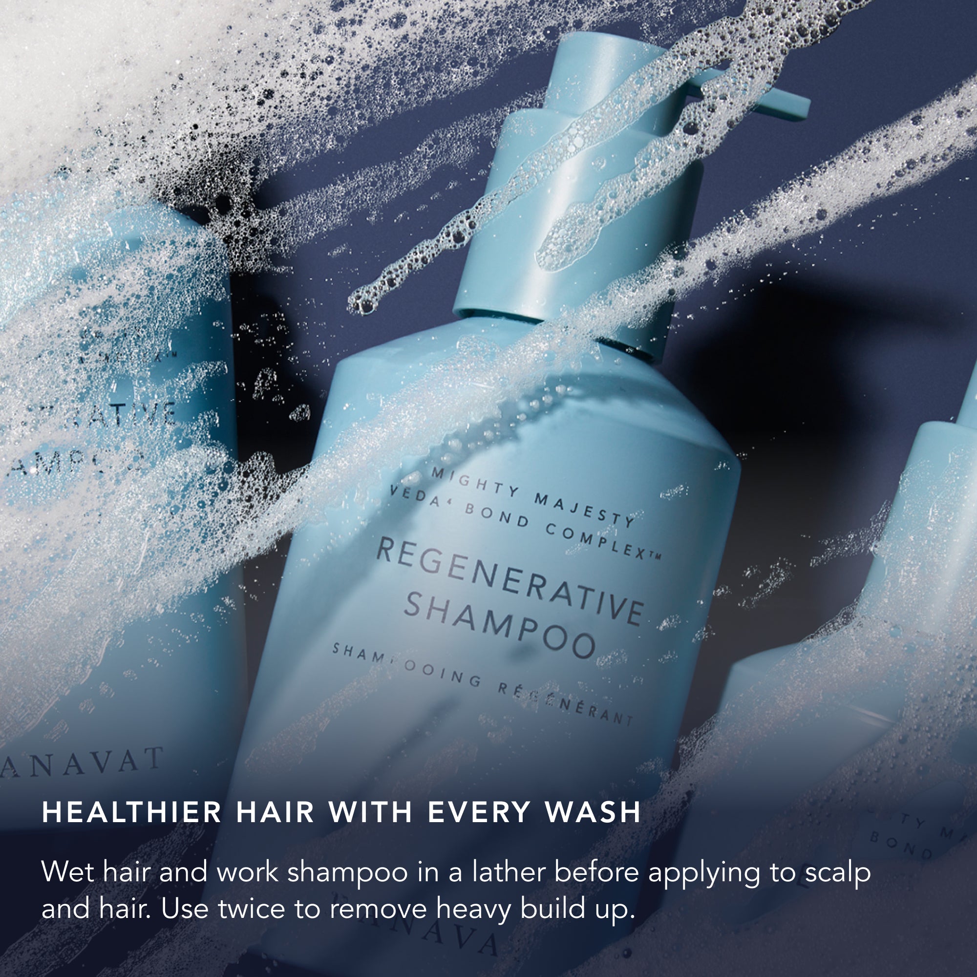 Rincez abondamment. Poursuivez avec l'après-shampoing Regenerative Veda⁴ Bond Complex pour de meilleurs résultats.