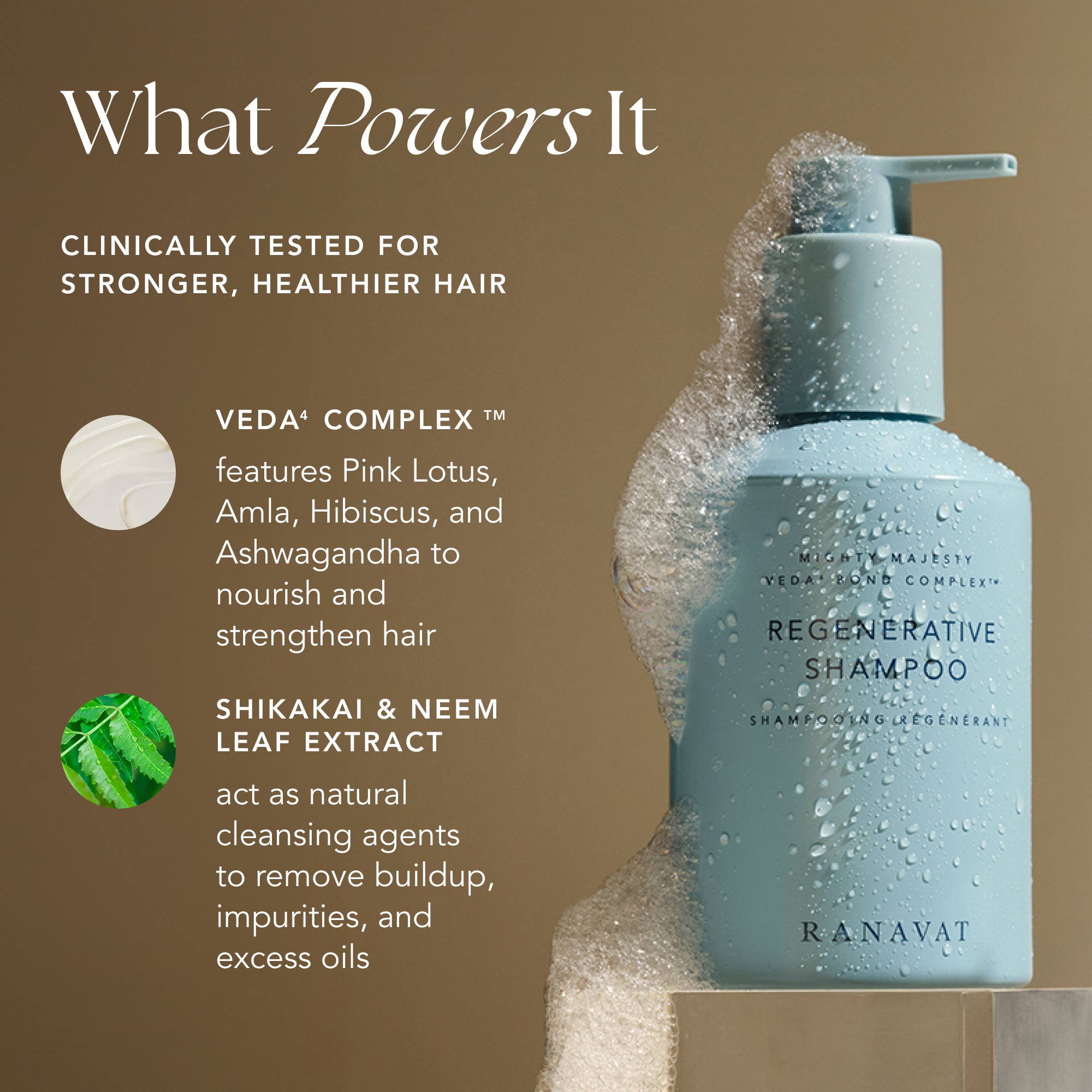 Le premier shampooing ayurvédique cliniquement testé pour régénérer et transformer les cheveux en commençant par la racine de la santé capillaire – le cuir chevelu.
